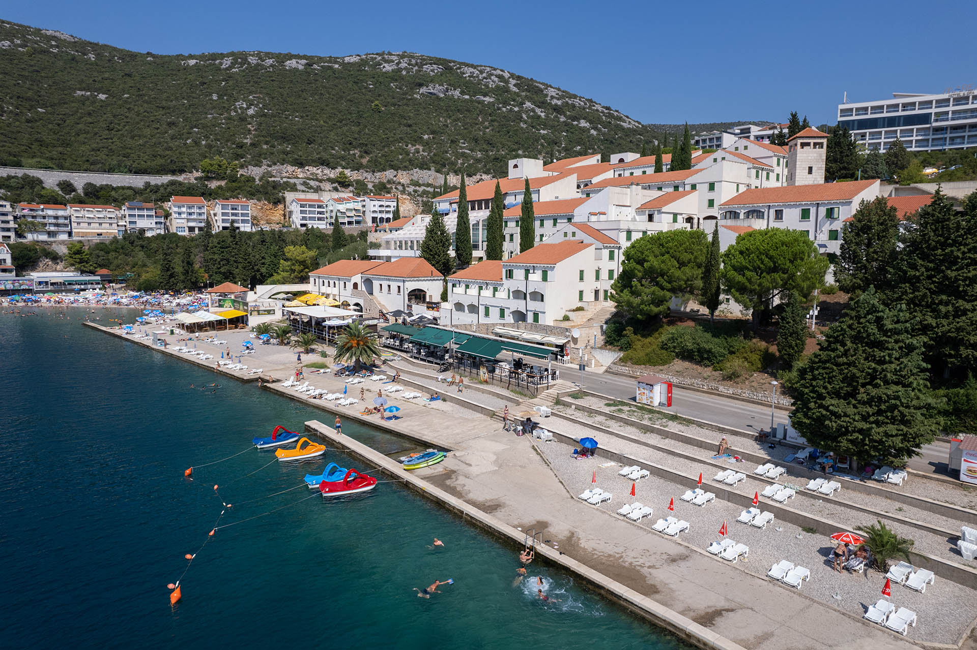 Neum is perfectly positioned for exploring the region. It is located just 70 km from Dubrovnik, 90 km from Dubrovnik Airport, 70 km from Mostar and Međugorje, and only 30 km from the railway stations in Ploče and Metković. Its strategic location makes Neum an ideal starting point for numerous day trips and sightseeing tours throughout the surrounding area.